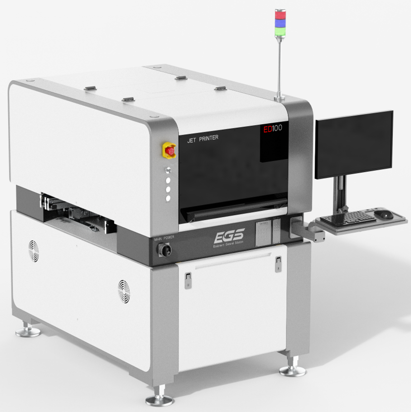 Jet Printer -ED 100 Series 고속 젯프린터 최소 Dot size 150 μm 시간당 180만 Dotting 속도 공정능력 1.33cpk 이상의 고정밀 고품질 구현 메탈마스크없이 솔더페이스트 도포