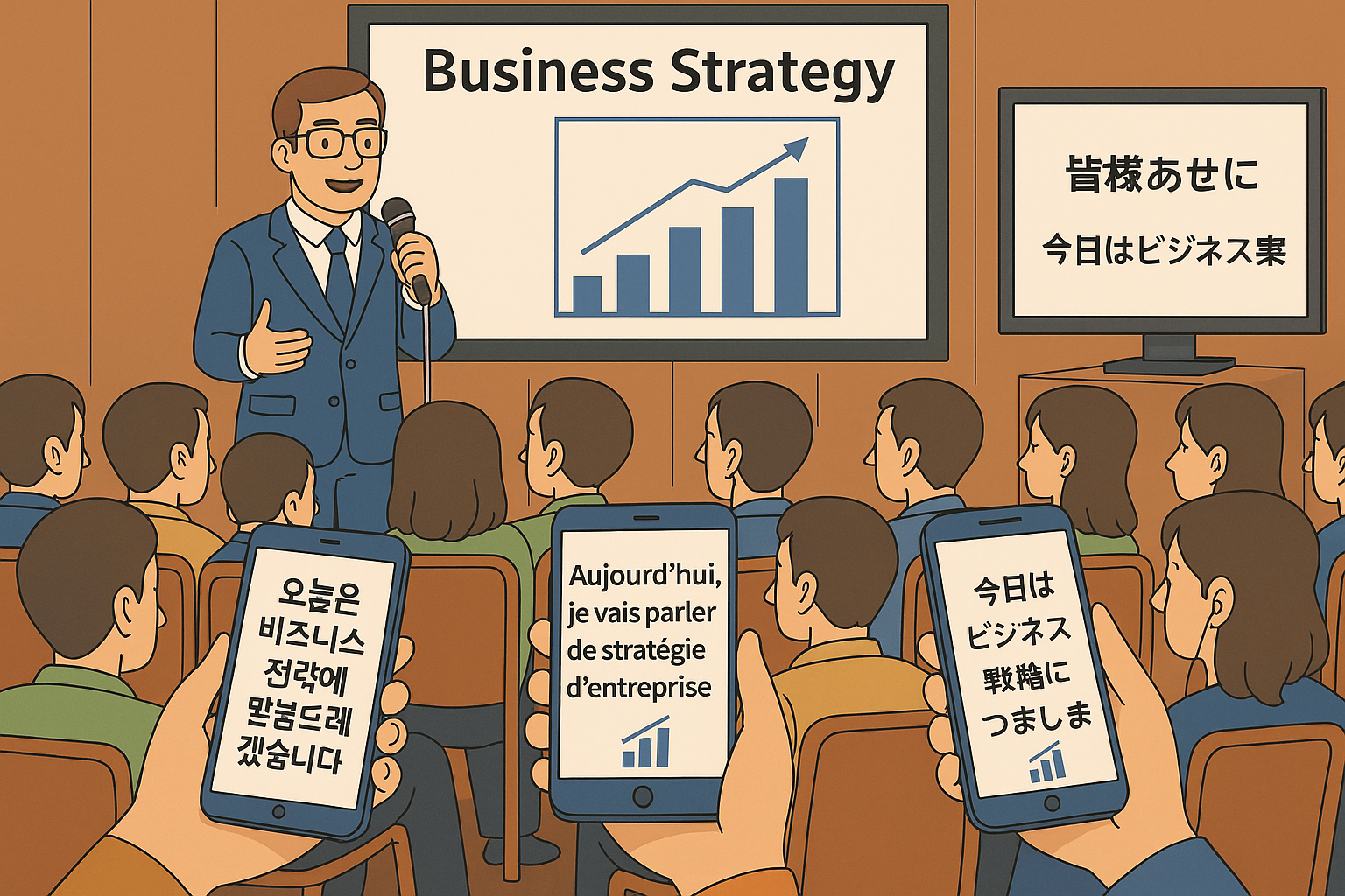 본 시스템은 국제 전시•컨퍼런스•강연 현장에서 다수의 참가자가각자의 희망 언어로 원활히 강연을 청취할 수 있도록, 실시간 음성인식(STT) + 번영(Translation) + 음성합성(TTS/자막)기술을 통합한 AI 기반 실시간 다국어 통역 시스템 입니다.